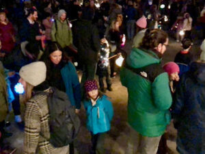 Ein stimmungsvolles Lichtermeer setzte sich schließlich in Bewegung, als gegen 17:00 Uhr der Spielmannszug den Umzug durchs Viertel führte.