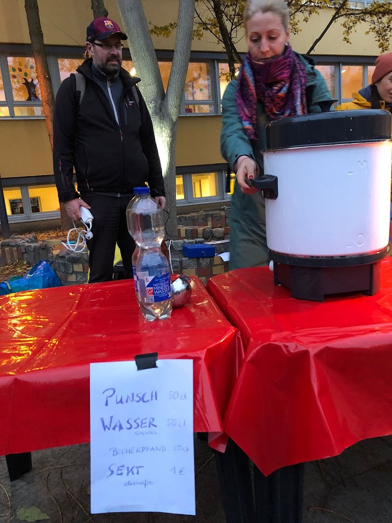 Die Wartezeit verkürzten Kinderglühwein, Kuchen, allerlei Gegrilltes, eine Gemüsesuppe aus geretteten Lebensmitteln (ein herzliches Dankeschön an Herrn Schneppe!) und der Waffelstand der Klasse 4b unter Leitung von Frau Drevenstedt.