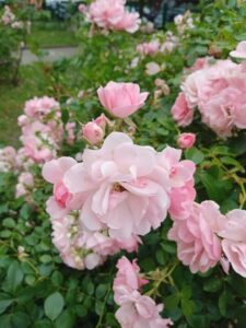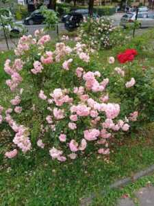 Zur Abwechslung vermelden wir hier mal etwas Botanisches: Im Fahrradgarten stehen die Rosen in voller Blüte.