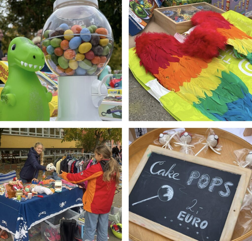 Auf dem Pausenhof der Klecks Grundschule wurden Spielsachen, Bücher, Kleidung und viele andere Schätze angeboten. Es war schön zu sehen, wie viele Dinge ein neues Zuhause gefunden haben und wie viele Kinder ihr Organisationstalent und Verhandlungsgeschick erproben konnten.